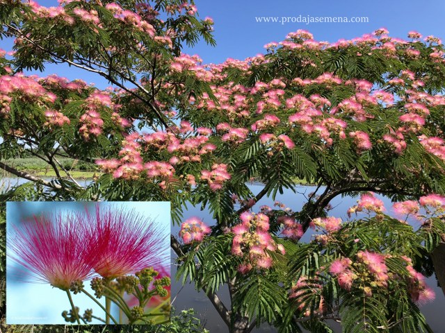 š³Albicija je brzo-rastuÄe ukrasno drvo (poznato i kao. svilenkasto drvo, persijsko drvo,ruzicasti siris). Ima lepe, fine peraste listove i ružiÄaste āpahuljasteā cvetove. PotiÄe iz toplijih krajeva Azije, ali odlicno uspeva i kod nas,u mnogim zemljama poznata je kao uspavano drvo ili nocni spavac,jer se listovi zatvaraju nocu i po oblacnom vremenu.Ovo prelepo drvo za samo par godina moze narasti i do 5+ m(raste i do 10-15 m),orezivanje mu odgovara i omoguÄava održavanje željene visine, a drvo je lepo kada je u punom cvetu tokom leta(cak i kada je manje).Ā