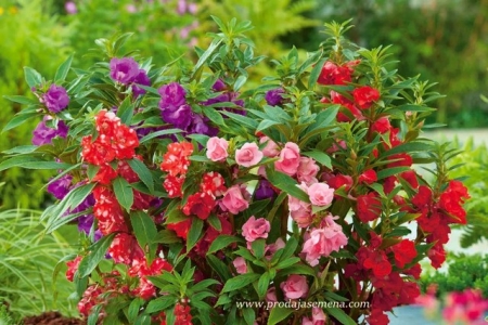 Idealna kombinacija: balzaminka uz begonije, vodenike ili niske dalije.