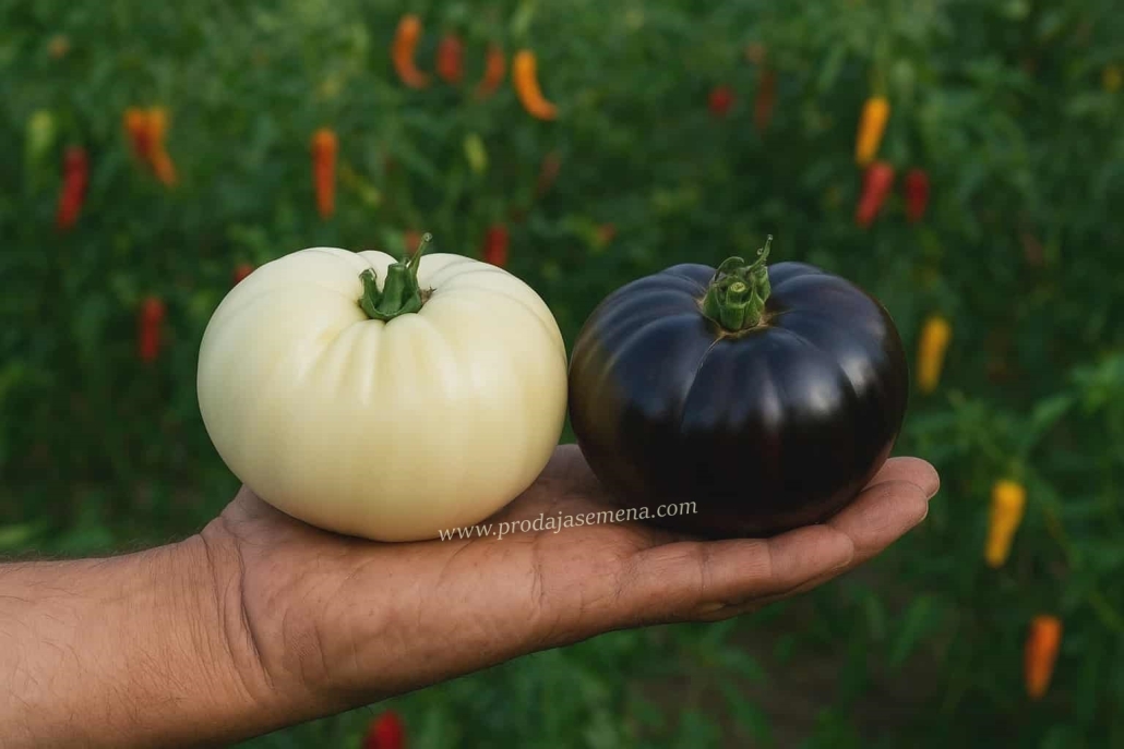 🌑🤍Zajedno, beli i crni paradajz predstavljaju ravnotežu prirode — jedan nežan i umirujuć, drugi jak i zaštitnički.