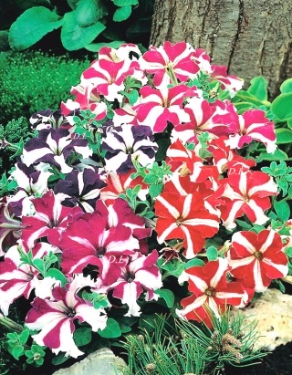 Petunija Compatta mix je rastuca petunija sa veoma velikim i mnogobrojnim cvetovima plave,grimizne ,crvene i ruzicaste boje,sve sa kontrastnim upadljivim zvezdama.Biljka koja raste 30 centimetara u visinu. Zahvaljujući svom obliku i rastu, ova sorta je pogodna za cvetne gredice i razne vrste kontejnera, uključujući i saksije za balkone ili posude. Petunia Compata ima izuzetno dug period cvetanja, koji se proteže od maja pa sve do oktobra. Za to vreme ova sorta cveta najobilnije.