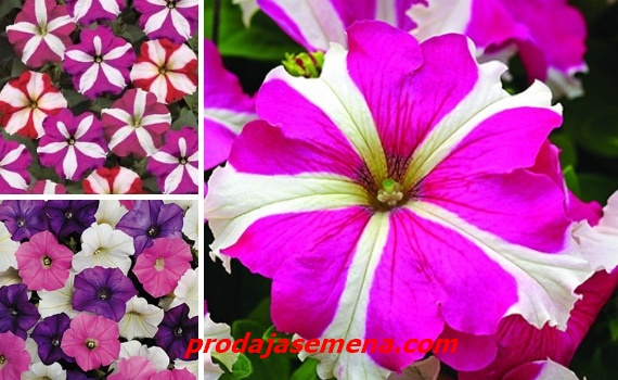 Petunija Compatta mix je rastuca petunija sa veoma velikim i mnogobrojnim cvetovima plave,grimizne ,crvene i ruzicaste boje,sve sa kontrastnim upadljivim zvezdama.Biljka koja raste 30 centimetara u visinu. Zahvaljujući svom obliku i rastu, ova sorta je pogodna za cvetne gredice i razne vrste kontejnera, uključujući i saksije za balkone ili posude. Petunia Compata ima izuzetno dug period cvetanja, koji se proteže od maja pa sve do oktobra. Za to vreme ova sorta cveta najobilnije.