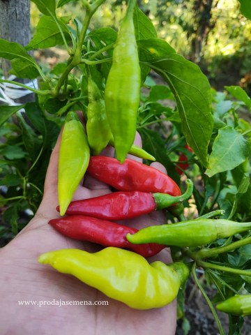 Prelepa i neobična sorta čilija jedinstvenog oblika i boje — pravi ukras svake bašte i terase, a ujedno i izuzetno ukusna, mesnata i blago ljuta paprika.