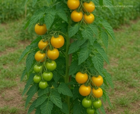 🍅 Predstavljamo vam Žuti Romus – ukusnu, socnu i aromatičnu sortu koja se ističe i po izuzetnoj rodnosti! Plodovi nisu masivni pojedinačno, ali biljka je obrasla plodovima, tako da svaki grm donosi obilje žutih, sočnih plodova. Jarka žuta boja ne samo da privlači oko, već i doprinosi blagoj lekovitosti paradajza, jer žuti plodovi sadrže antioksidante i vitamine koji pomažu imunitetu i opštem zdravlju.