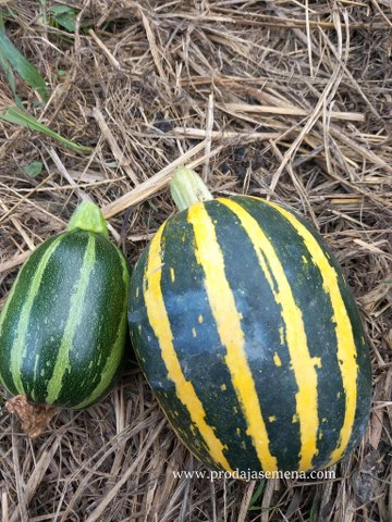Pikolo zbunasta(moguce vreza do 1 m) tikvica je veoma rodna i vizuelno atraktivna sorta. Daje sitnije(kao mlade) plodove prečnika 10 -12 cm,prakticno bez semena u plodu, koji sazrevaju do tamnozelene boje i do 15cm(400-600gr) sa svetlim uzdužnim prugama.Plodovi su okrugli ili blago izduženi.