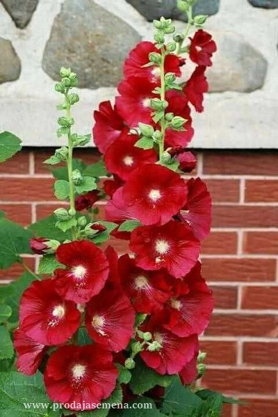Prodaje se seme ukrasnog crvenog sleza – visoka, upadljiva bastenska biljka koja daje jaku, vatreno crvenu boju i prirodan, bogat izgled cvetnim lejama.